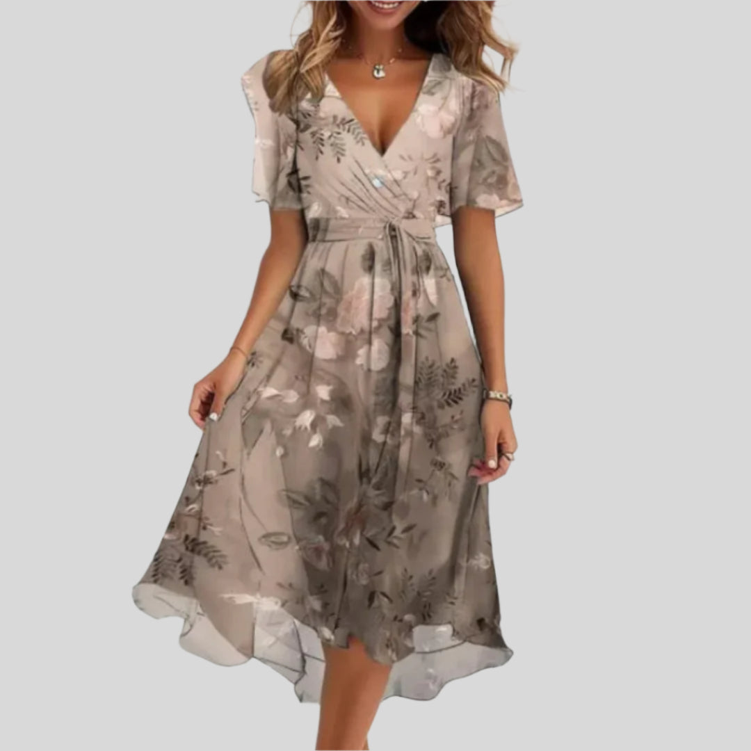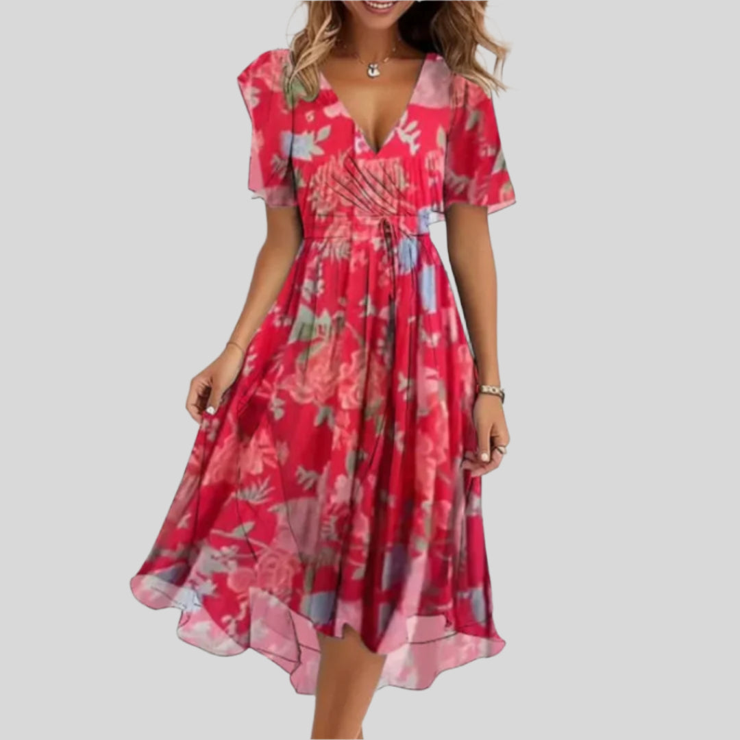 إلودي | فستان سائل مزخرف بأزهار وياقة على شكل V