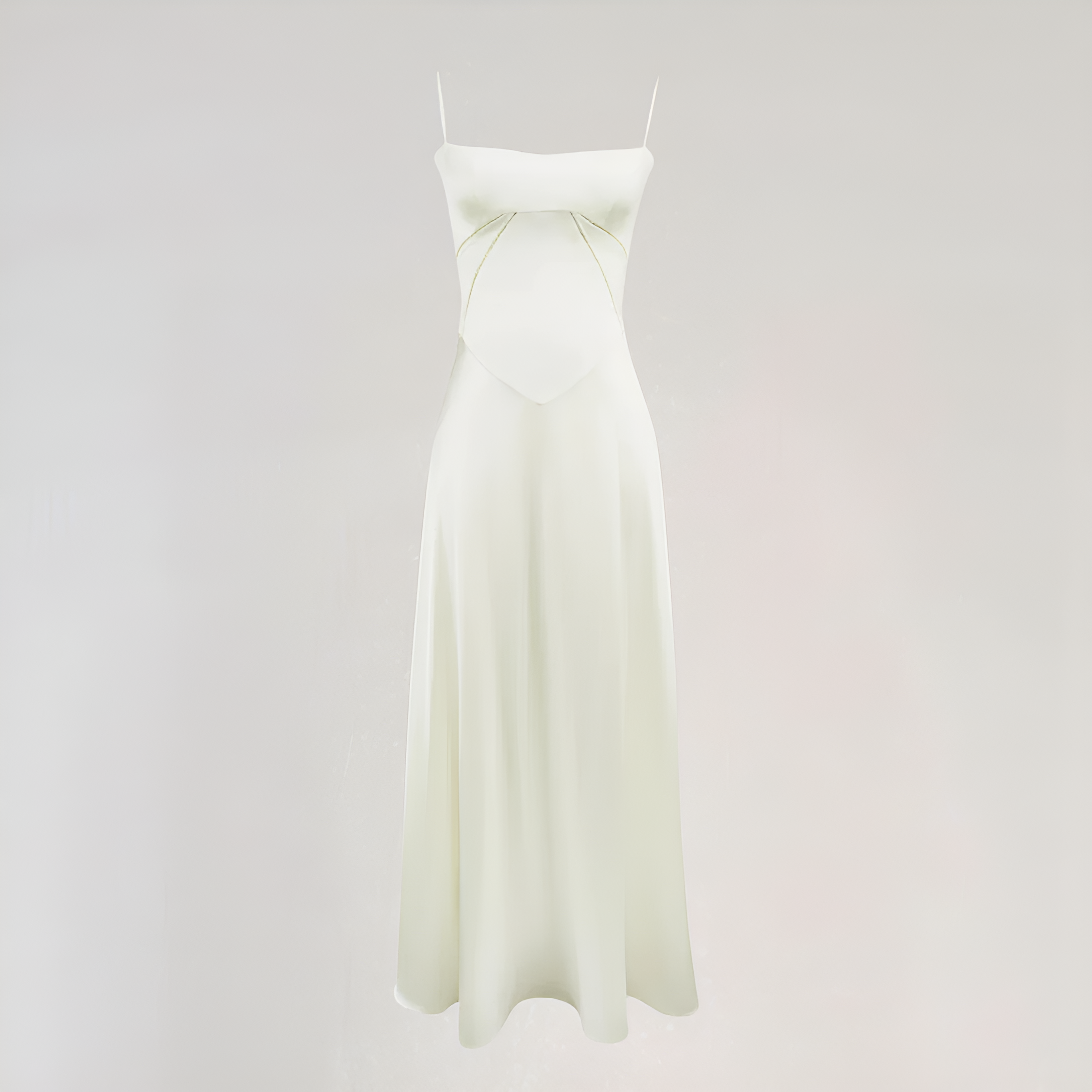 Toto dlouhé šaty zvýrazňují siluetu díky svému korzetovému živůtku, který jemně podtrhuje pas. Jeho splývavý střih dodává pohyb a eleganci, zatímco korzetový zadní díl přidává romantický a strukturovaný prvek. Ideální na večery, gala nebo ceremonie.