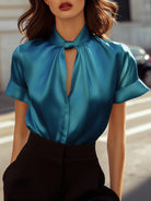 Tato elegantní blůza okouzlí svým moderním výstřihem zdobeným jemným výřezem. Její volný střih se přizpůsobí všem typům postavy, nabízí pohodlí a rafinovanost. Je univerzální, hodí se jak na formální příležitosti, tak na neformální chvíle.