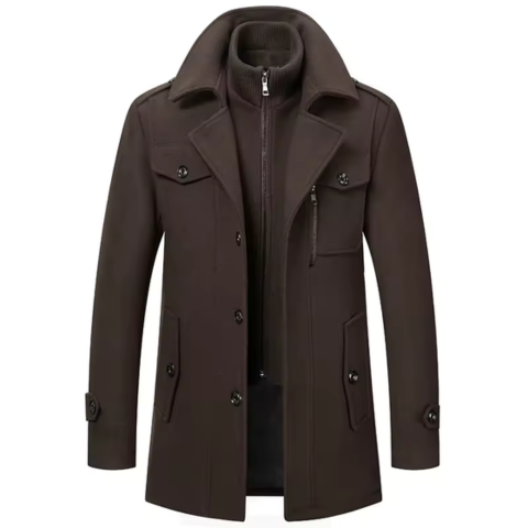 Sebastien | Mænds Dubbeltyk Frakke — Dobbelt Lukning Og Foran Knapper