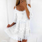 Αυτή η κοντή μποέμικη φόρεμα μαγεύει με την ρευστή της γραμμή και τους ακάλυπτους ώμους που τονίζουν τη σιλουέτα με κομψότητα. Οι λεπτές της τελειώσεις προσθέτουν μια ρομαντική πινελιά, ιδανική για καλοκαιρινές μέρες ή βόλτες στην παραλία.