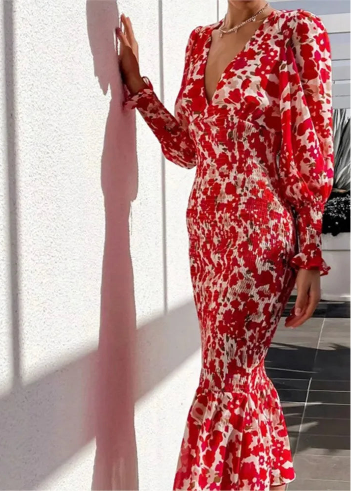Αυτή η μακριά φόρεμα προσφέρει μια ρέουσα και κομψή σιλουέτα. Ο καθαρός σχεδιασμός της προσαρμόζεται σε διάφορες περιστάσεις. Άνετη και στυλάτη, είναι ιδανική για μια μποχέμ εμφάνιση.