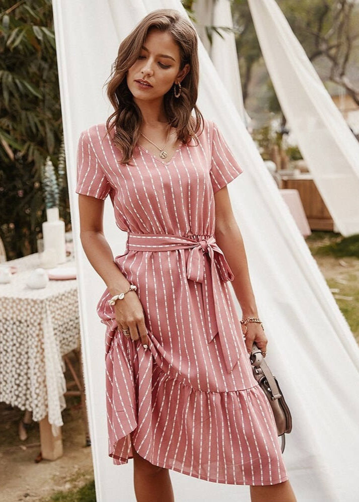 Νάχλα | Φόρεμα Με Κάθετες Ρίγες – Απλότητα Chic Και Αέρινη Γραμμή