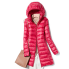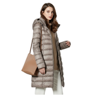 Tämä pitkä untuvatakki tarjoaa ympäröivää lämpöä pysyen samalla kevyenä ja tyylikkäänä.