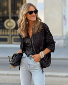 Tämä kimalteleva vetoketjullinen takki yhdistää tyylin ja mukavuuden. Sen rento leikkaus sopii erilaisiin tilaisuuksiin. Täydellinen päivittäisten asujen piristämiseen.