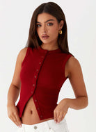 Isabelle | Top Sans Manches À Boutons – Élégance Décontractée