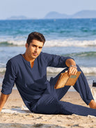 Cet ensemble pour homme allié style et bien-être. Composé d'un pantalon et d'une chemise, il est idéal pour les journées ensoleillées.