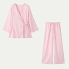 סט זה משלב חולצת קימונו עם שרוולים רחבים ומכנסיים בגובה מותן עם רגליים רחבות למראה זורם ומעודן. קל ונוח, הוא אידיאלי לימים חמים. זמין במגוון צבעים, הוא משלב סגנון קיץ עם חופש תנועה.