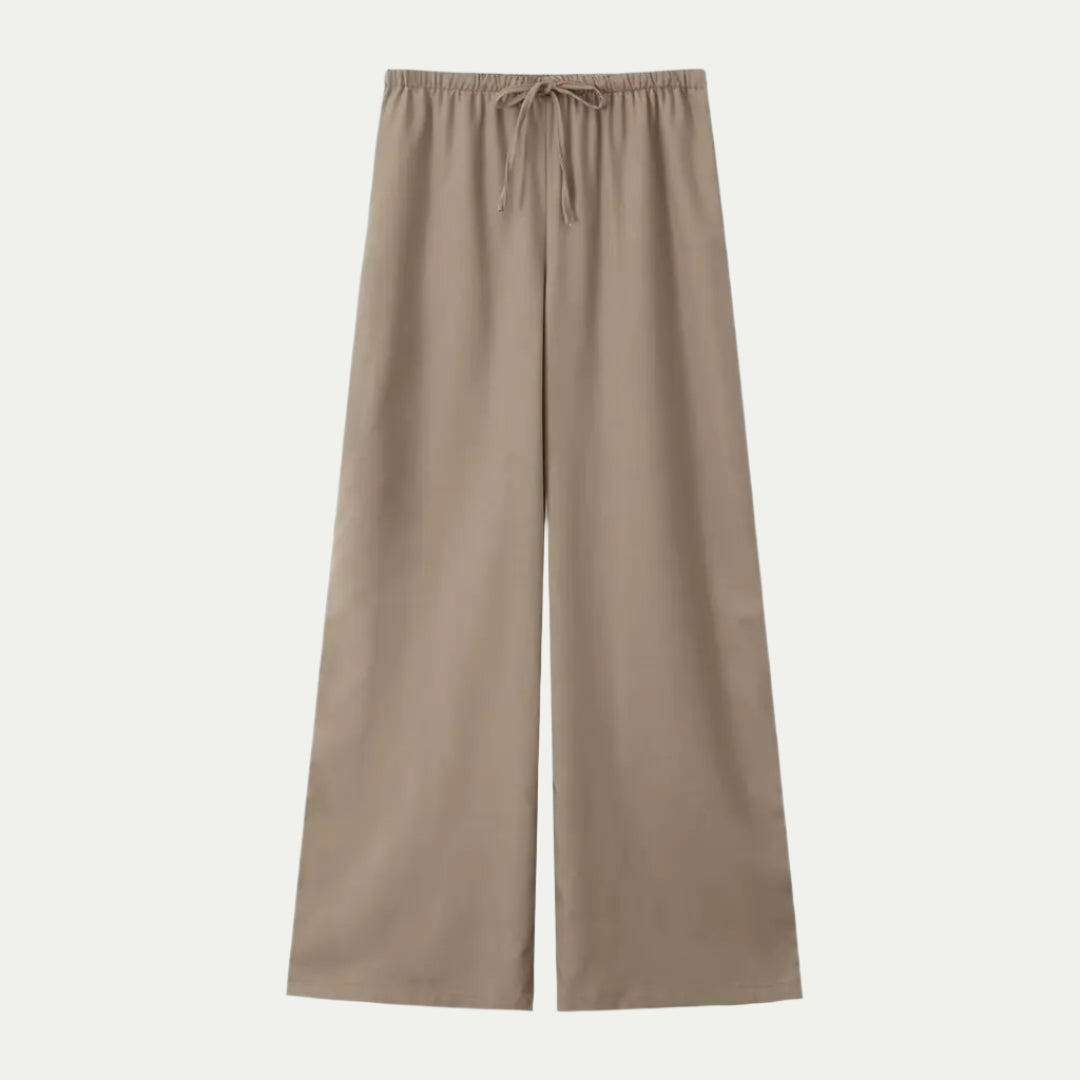 • מכנסיים בגובה מותן עם רגליים רחבות לסילואט אלגנטי.