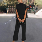 Questo elegante combinato unisce eleganza e comfort con la sua silhouette lusinghiera a gamba larga e le sue maniche a mantella leggere. Disponibile in vari colori, si adatta a tutte le vostre esigenze, dal look casual agli eventi più formali.