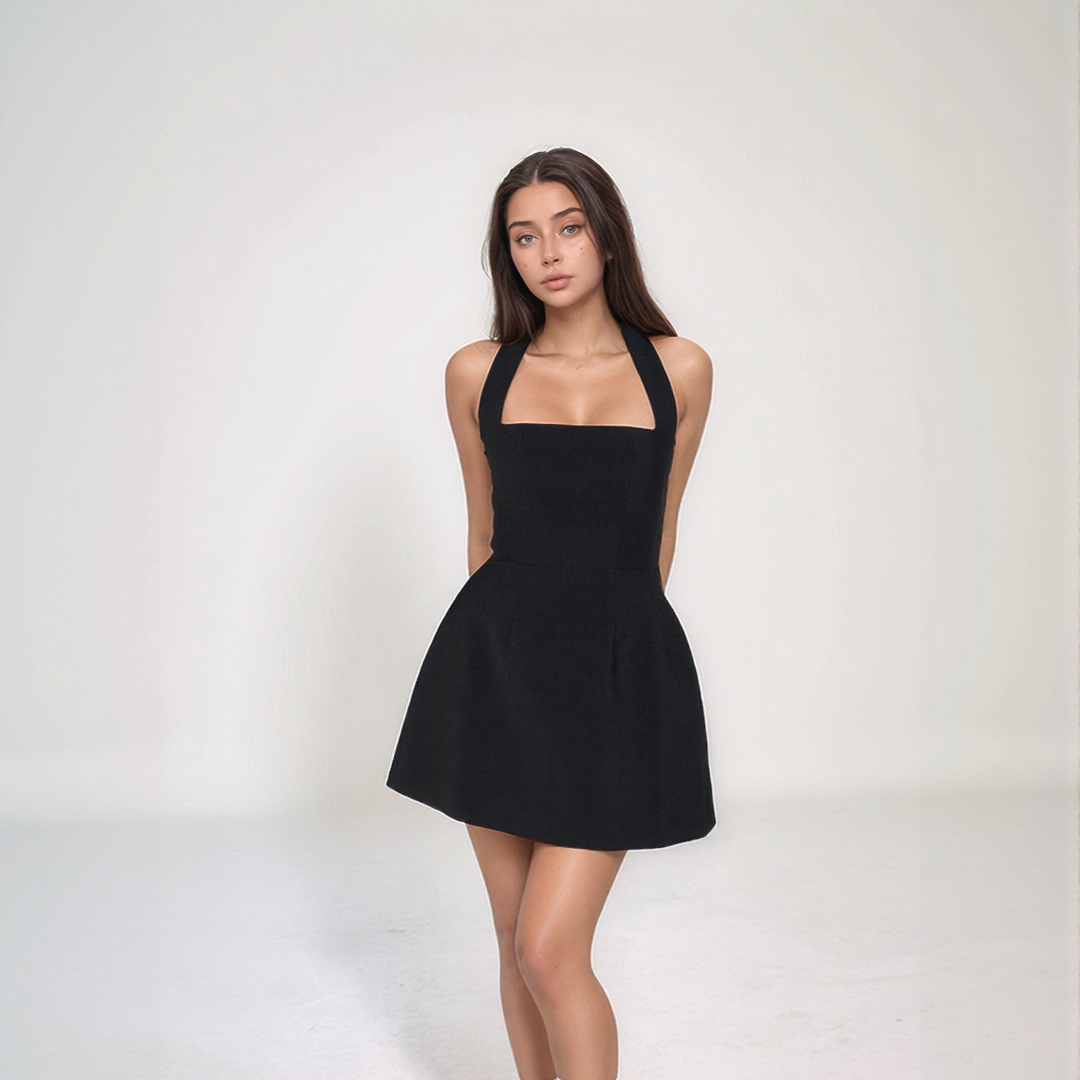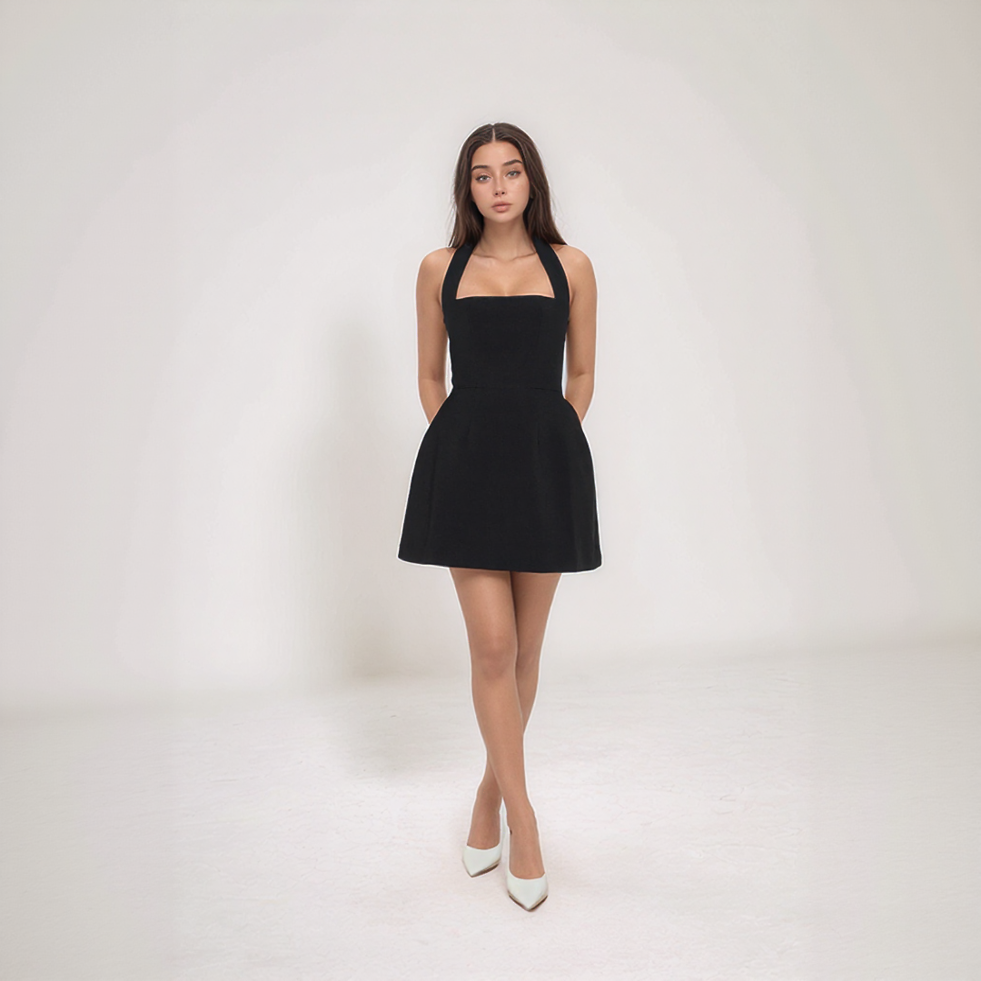 Sandra | Abito Mini Estivo – Scollatura Halter e Volume Fluido