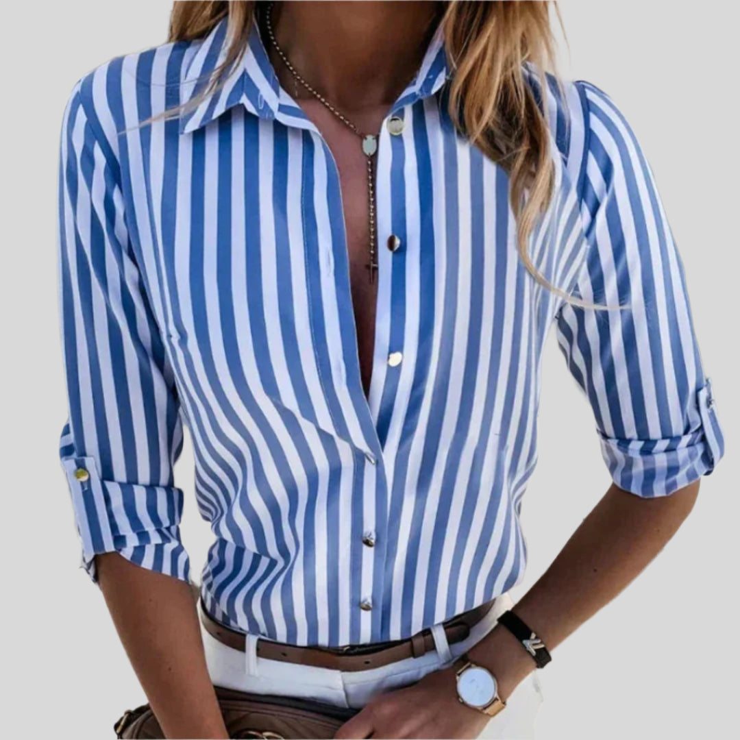 Questa camicia a maniche lunghe presenta un design a righe senza tempo. Disponibile in diversi colori, si adatta a tutte le occasioni estive. Il suo tessuto leggero assicura un comfort ottimale per tutta la giornata.