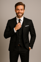 Dit driedelige kostuum biedt een moderne slim fit en strakke lijnen die de mannelijke silhouette accentueren. Perfect voor formele evenementen of zakelijke afspraken, het zorgt voor een verfijnde en zelfverzekerde uitstraling.