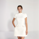 Deze korte jurk heeft een getailleerde snit die de silhouet met elegantie benadrukt. De fijn versierde zakken geven een vleugje subtiele verfijning, ideaal voor een chique en moderne look.