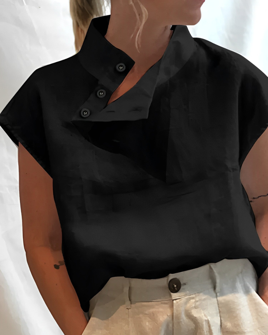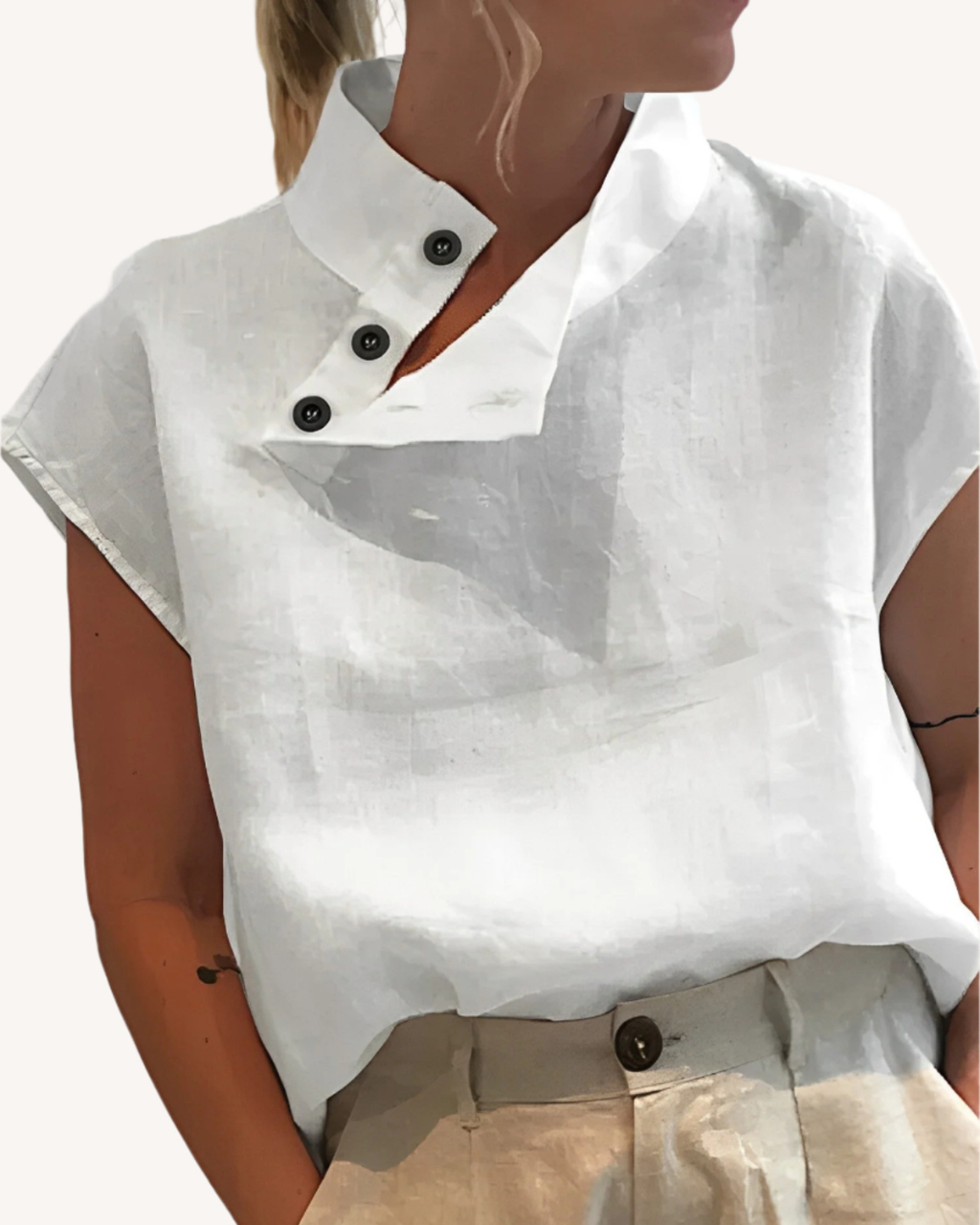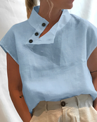 Nour | Blouse Dames Korte Mouwen Met Hoge Kraag
