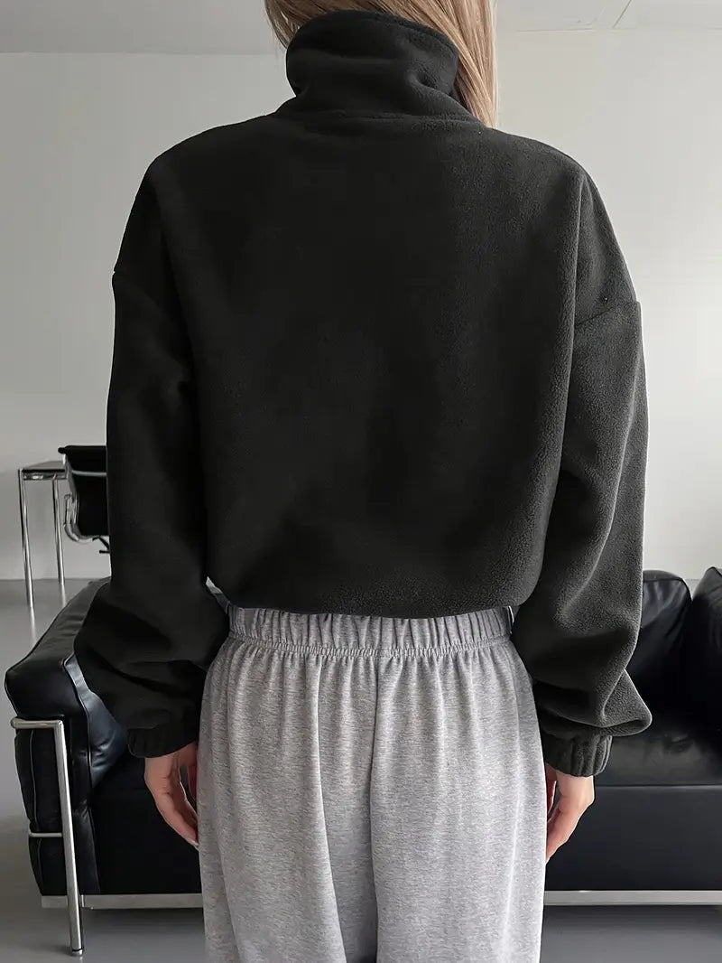 このショートジップジャケットは、スタイルと快適さの完璧なバランスを提供します。モダンなカットとハイネックが、リラックスしたエレガントな外観を際立たせます。日常使いに最適で、シンプルな服装と簡単に合わせて、努力なしでシックなルックを演出できます。