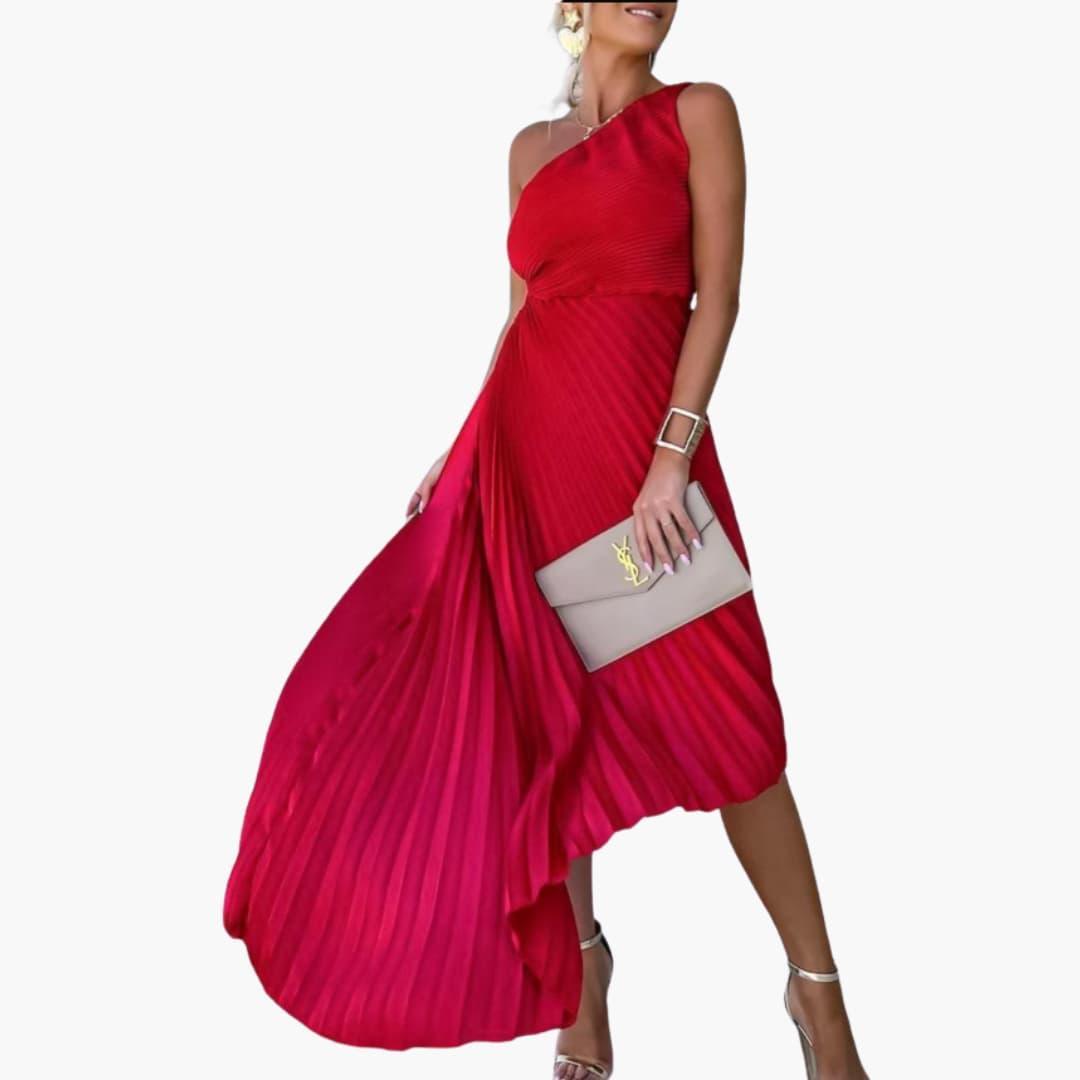 このシックなイブニングドレスは、ユニークな肩と洗練された非対称のカットで魅了します。体のラインを完璧に引き立て、素晴らしいシルエットを作り出します。最もエレガントなイベントで輝くための理想的なアイテムです。