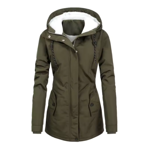 Sania | Dlhý kabát pre ženy — Kapucňa s šnúrkou a gombíkovými vreckami