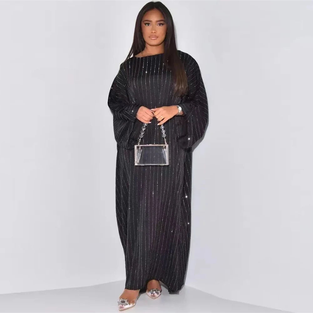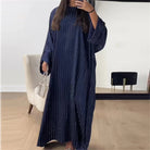 Táto večerná abaya kombinuje voľný strih s elegantným pruhovaným dizajnom. Jej široká silueta zaručuje absolútne pohodlie, zatiaľ čo jej jemné detaily diskrétne zvýrazňujú váš vzhľad.